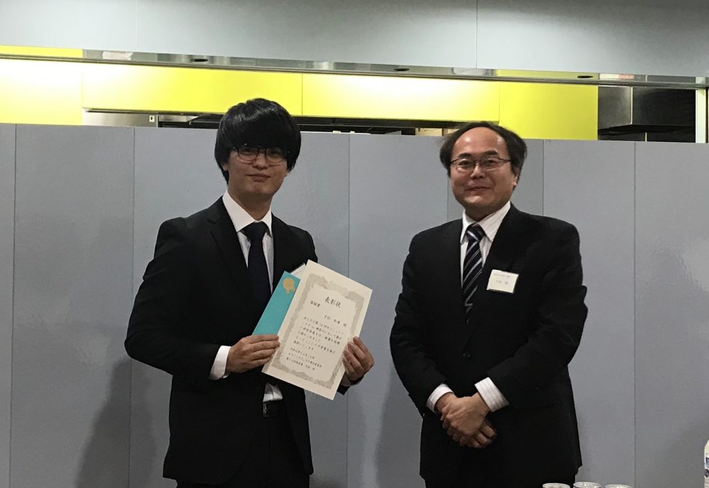 受賞された下杉君(左)と指導教員の竹本教授(右)