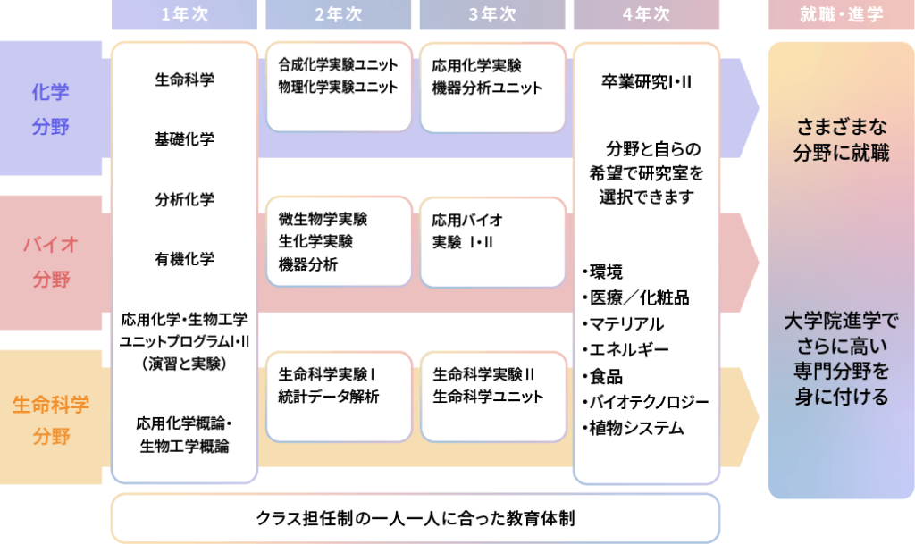 学部生の段階からバイオ・化学の研究者・技術者を養成します。